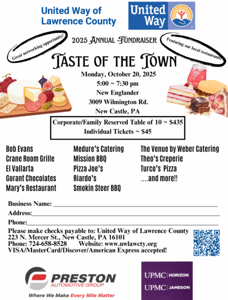 The Taste of The Town is an annual event presented by The United Way of Lawrence County and Sponsored by Preston Auto Group